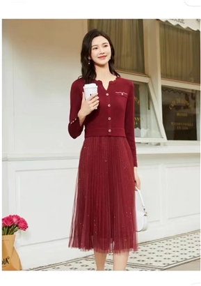 >>珂莱蒂尔针织拼接网纱连衣裙