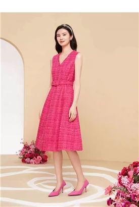 >>珂莱蒂尔玫瑰色羊毛花纱连衣裙