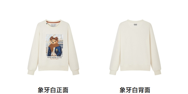 >>TeenieWeenie小熊冬季索罗娜圆领加绒加厚保暖白色卫衣宽松上衣女