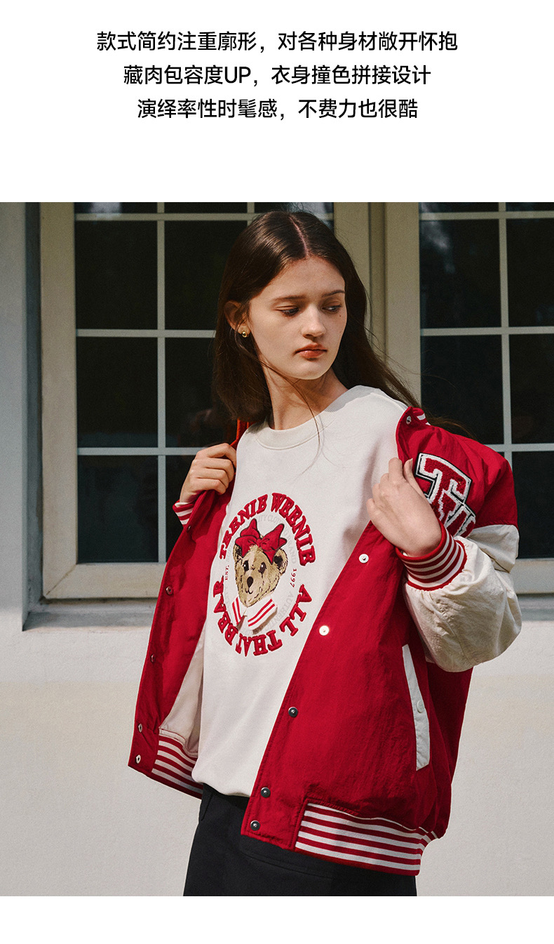 >>TeenieWeenie小熊2024年新款学院圣诞红色棒球服棉服棉袄新年外套