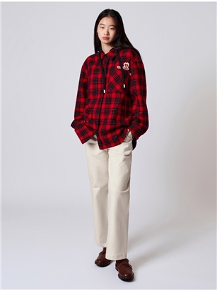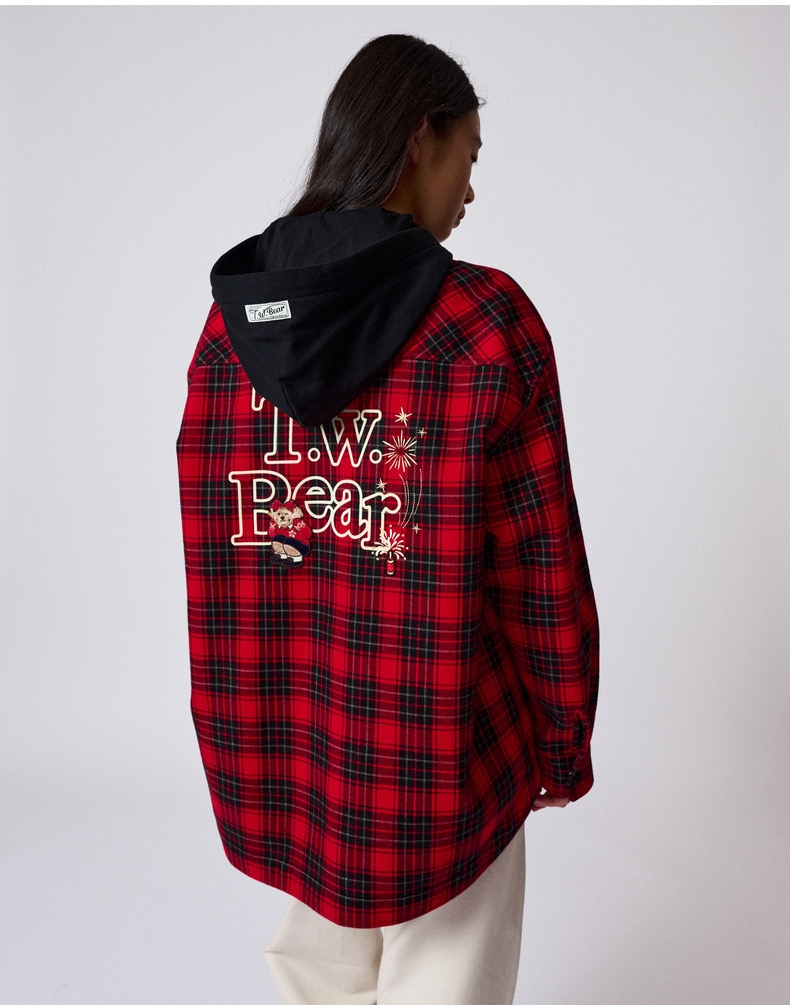 >>TeenieWeenie小熊2024年休闲时髦红色格纹新年连帽加绒衬衫外套女