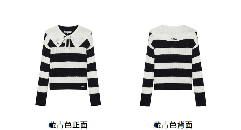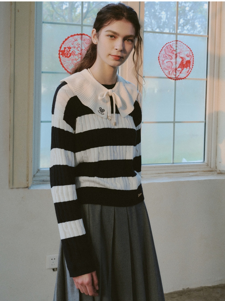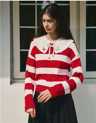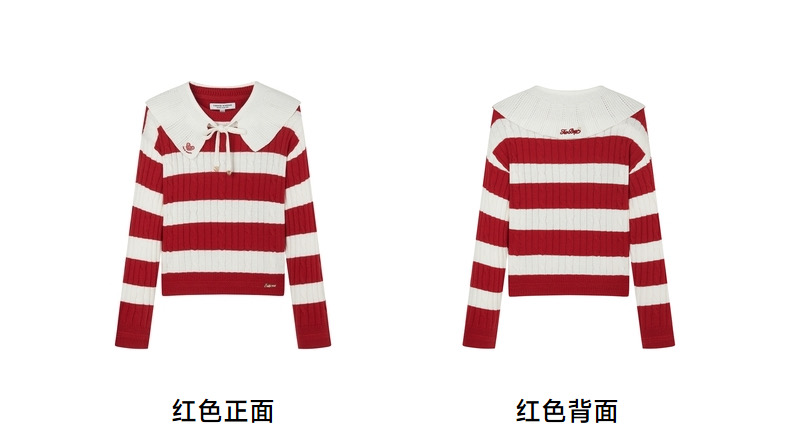 TeenieWeenie小熊2024年早春新款条纹圣诞红色新年毛衣套头针织衫