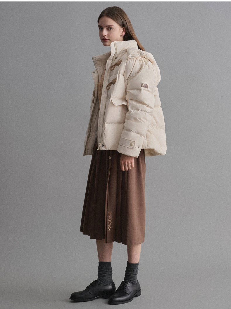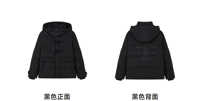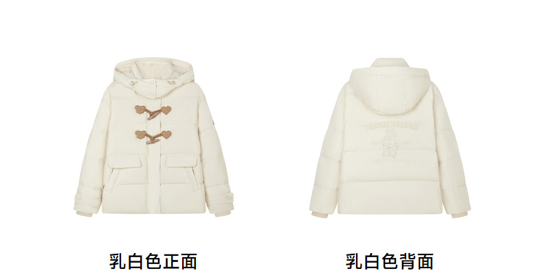>>TeenieWeenie小熊秋冬新款防泼水牛角扣短款羽绒服保暖外套女