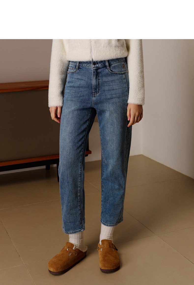 >>TeenieWeenie小熊秋冬新款基础直筒加绒牛仔裤长裤女装韩版