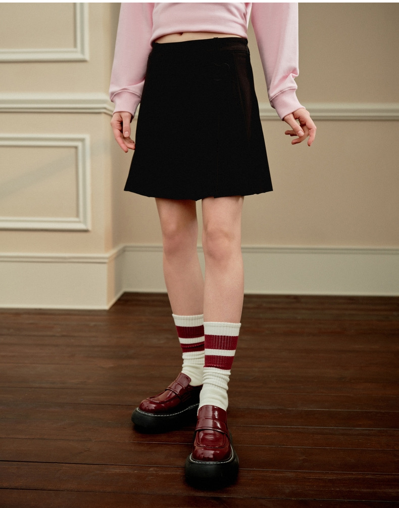 TeenieWeenie小熊秋冬新款学院风少女感简约百褶裙半身裙女