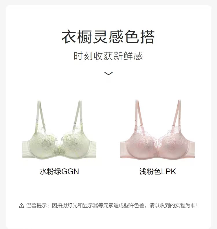 黛安芬悠然无钢圈聚拢薄杯蕾丝全杯文胸