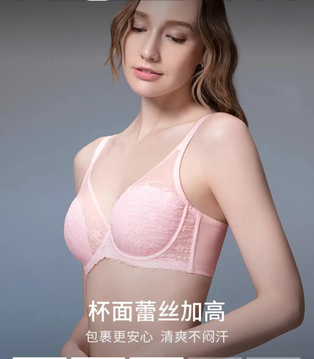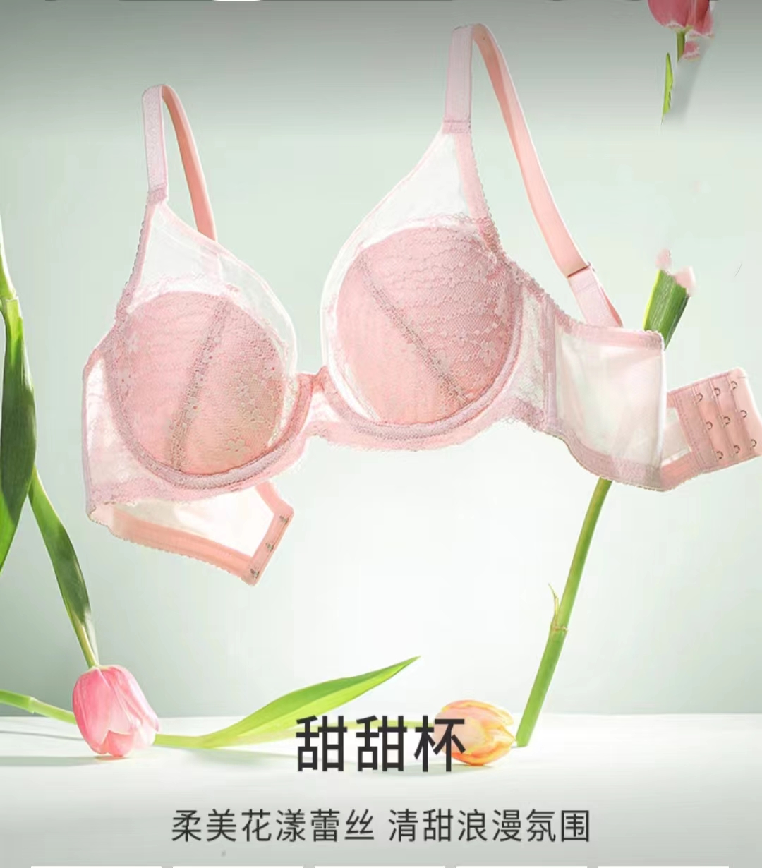 黛安芬悠然无钢圈聚拢薄杯蕾丝全杯文胸