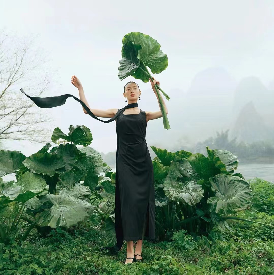>>伊芙丽(捏褶褐色背心连衣裙)