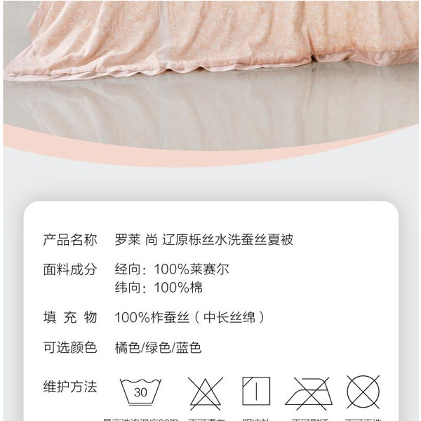 罗莱 尚辽原栎丝水洗蚕丝夏被