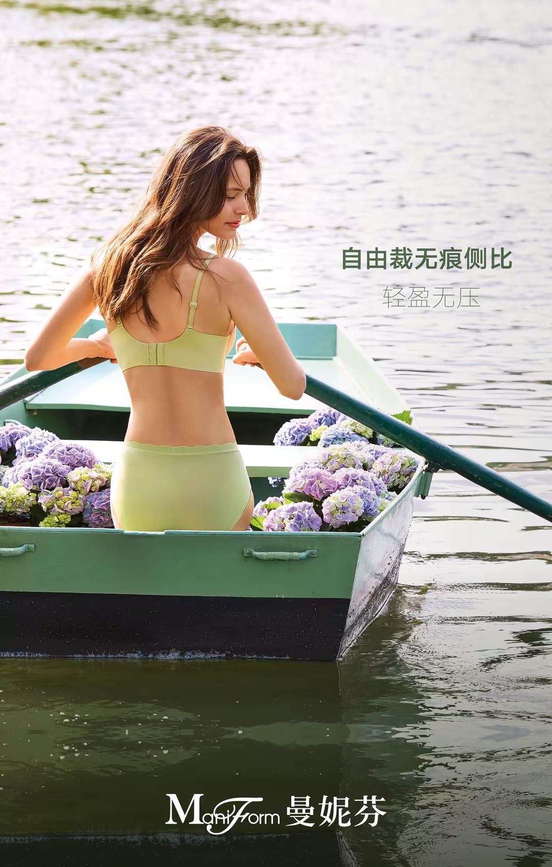 黛安芬悠然无钢圈聚拢薄杯蕾丝全杯文胸