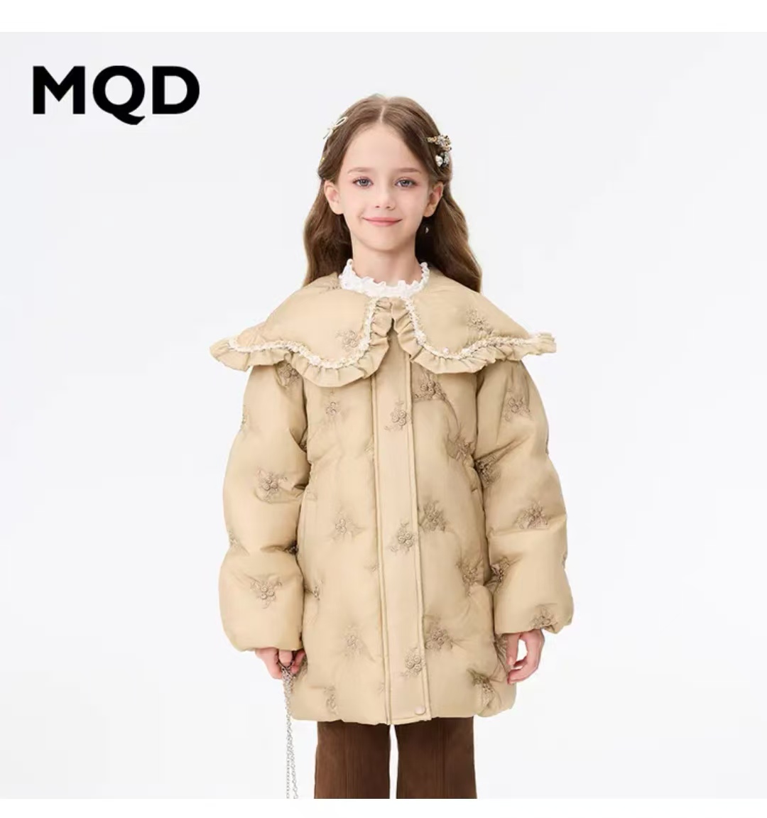 | 马骑顿MQD女童冬季精致花朵刺绣小香风翻领羽绒服 | |||