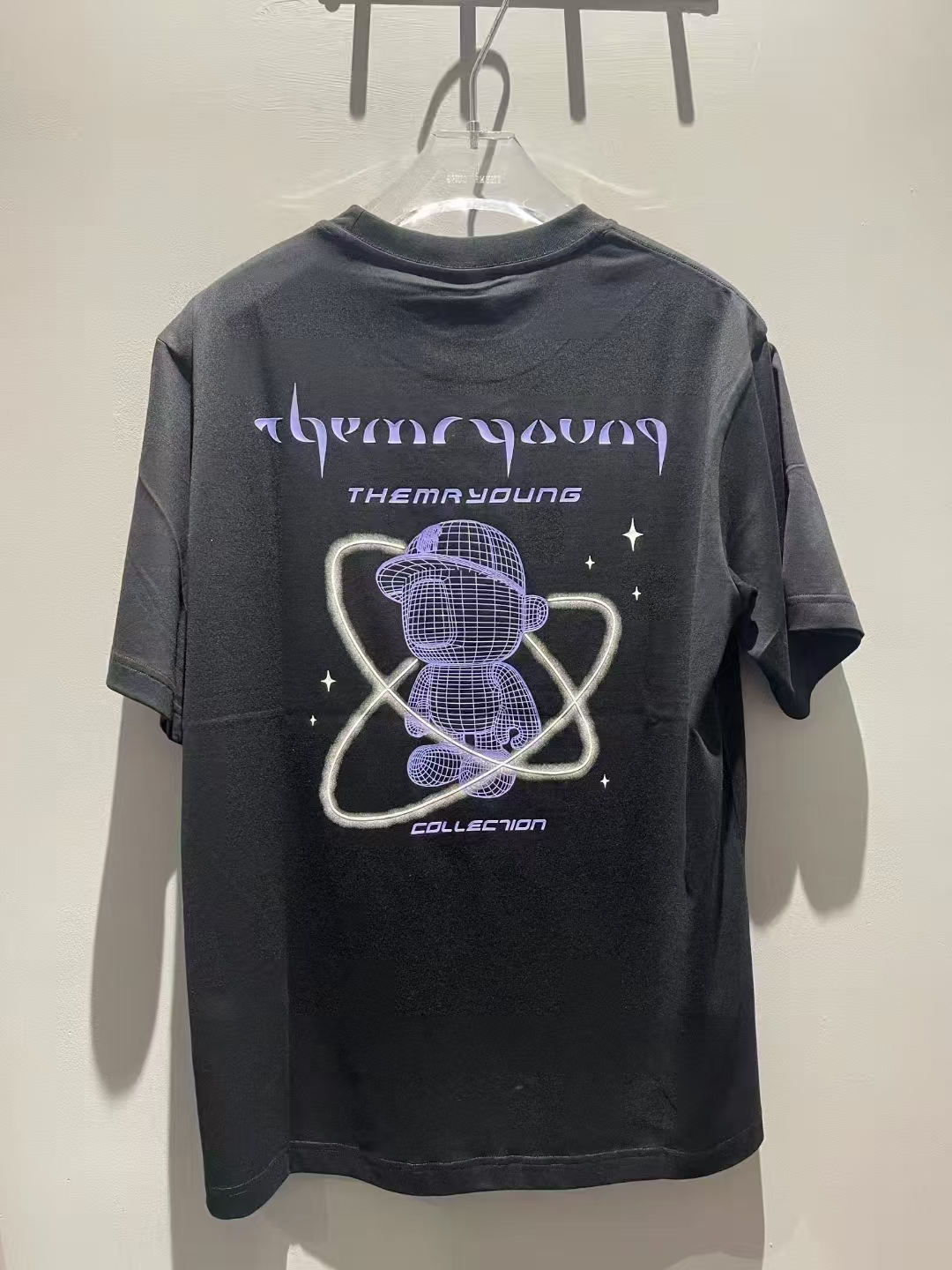 全棉短袖 经典版型 左胸logo与星星组合印花 后背三维扬仔星星图案点缀