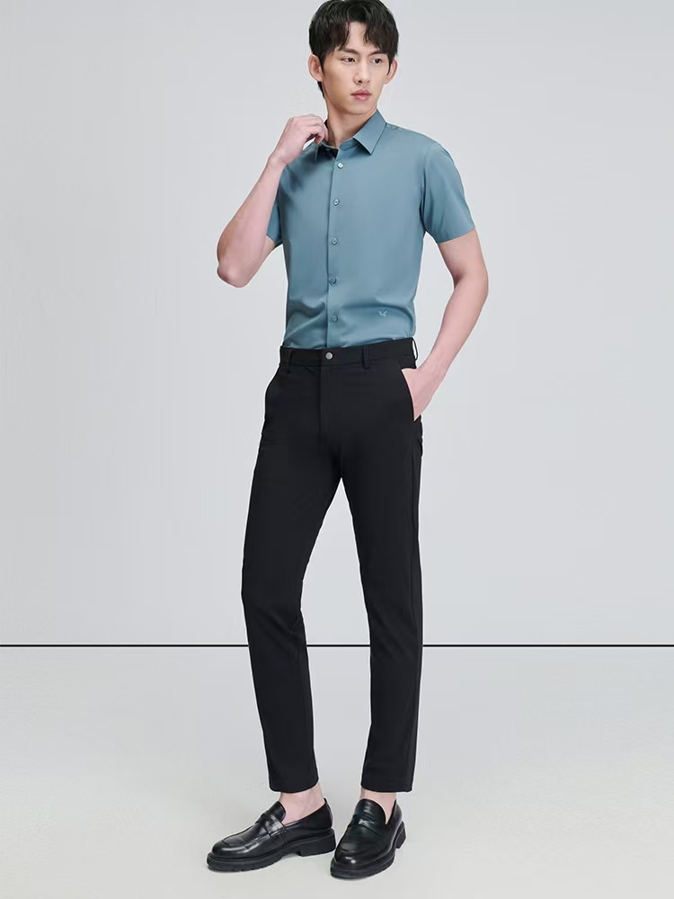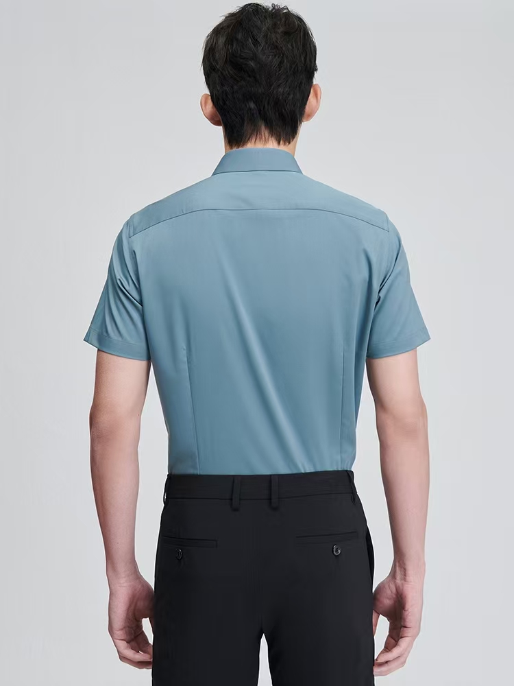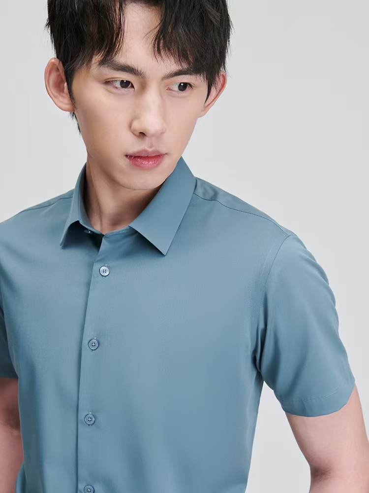 >>报喜鸟商务男士纯色绿色短袖衬衫ECC242207U