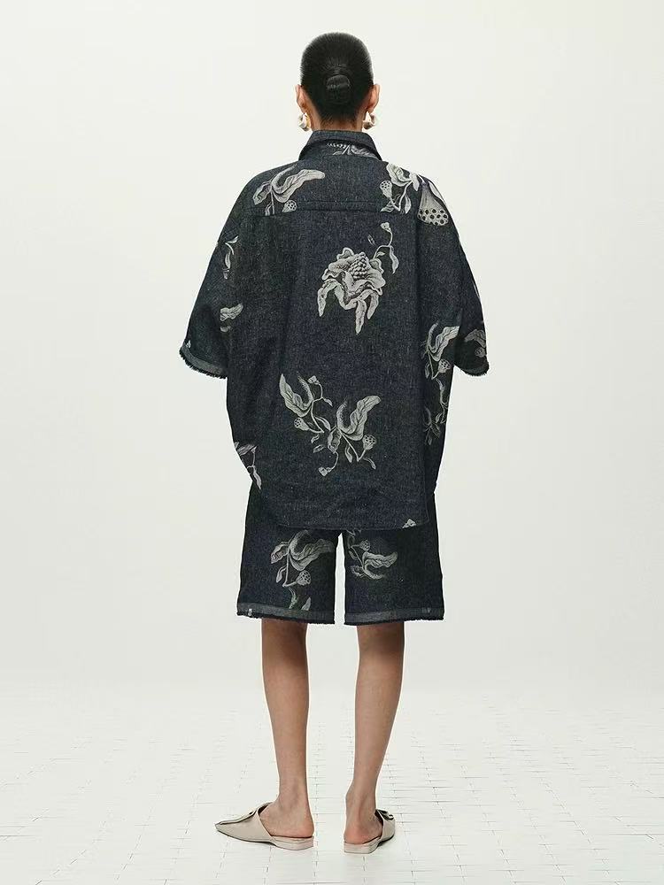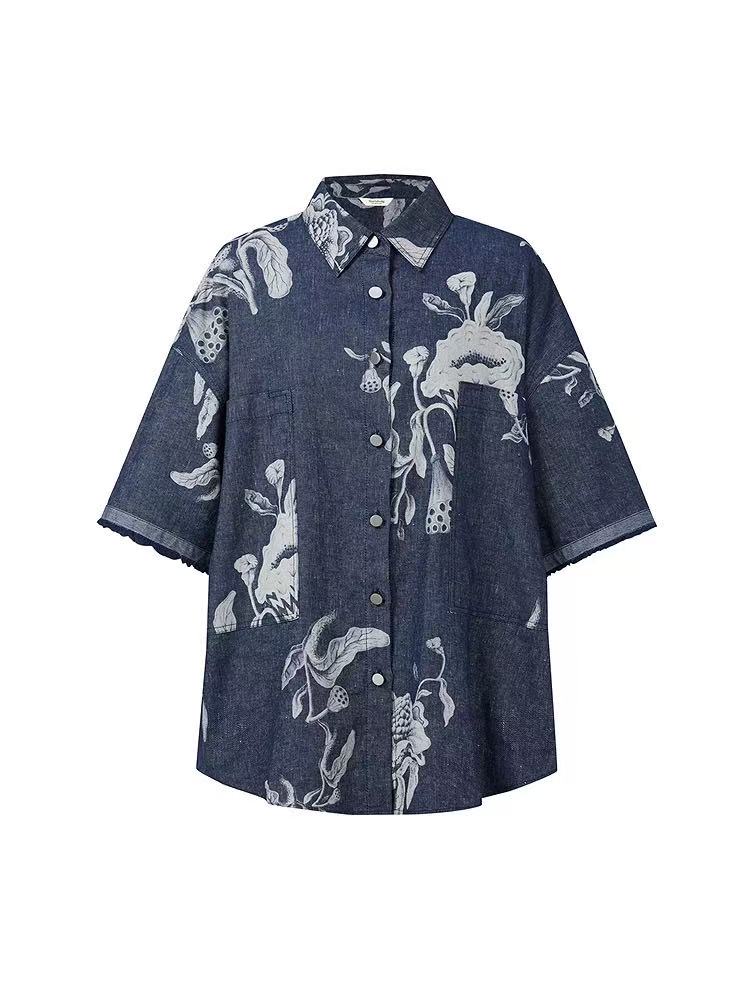 设计感牛仔印花上衣
