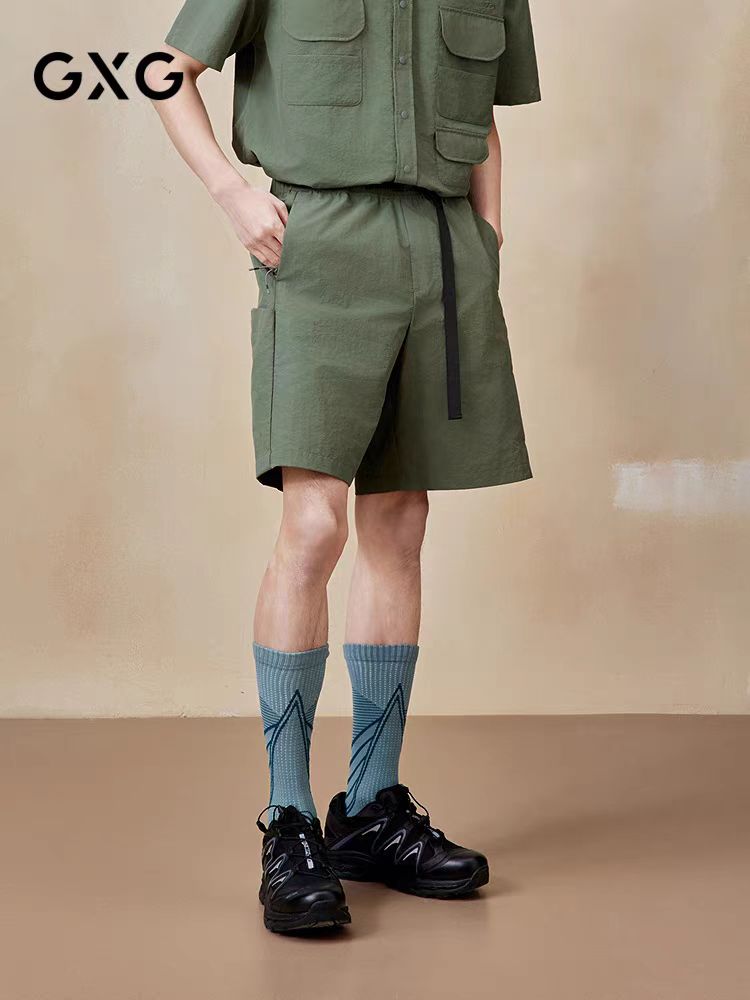 短裤穿起至膝盖以上 中腰常规直筒 豆绿色