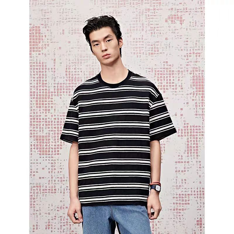 条纹设计 中阔宽松 100%棉