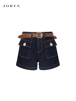 >>JORYA 25夏新款航海系穿搭修身时髦深色牛仔A字短裤