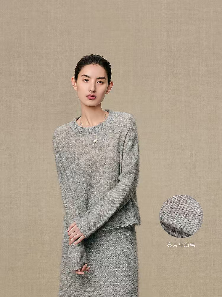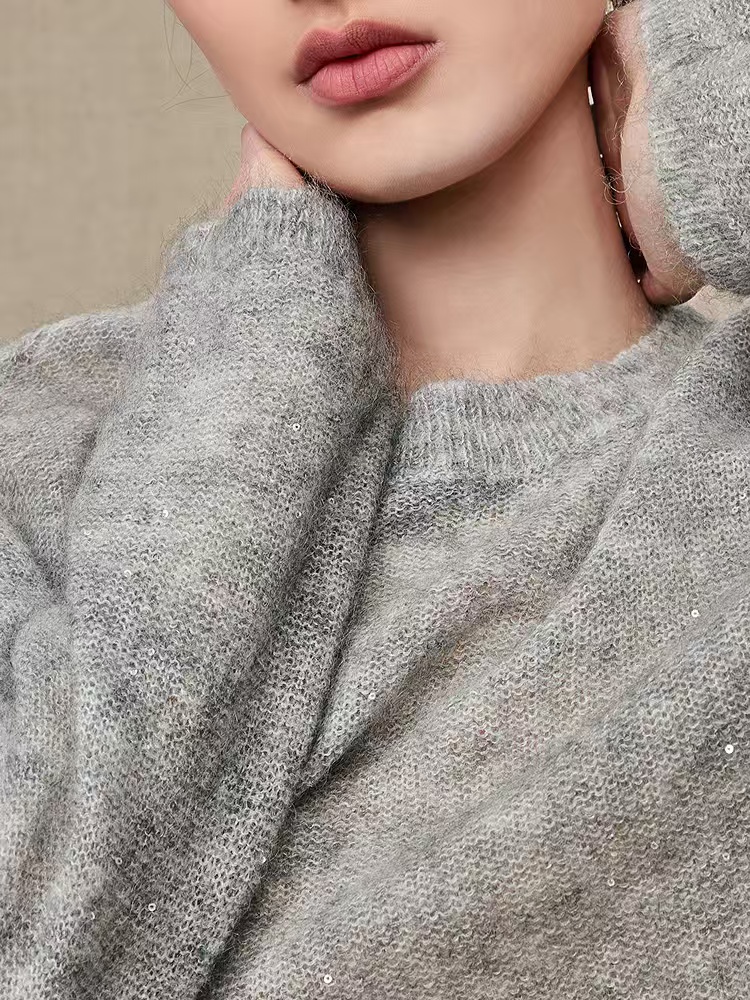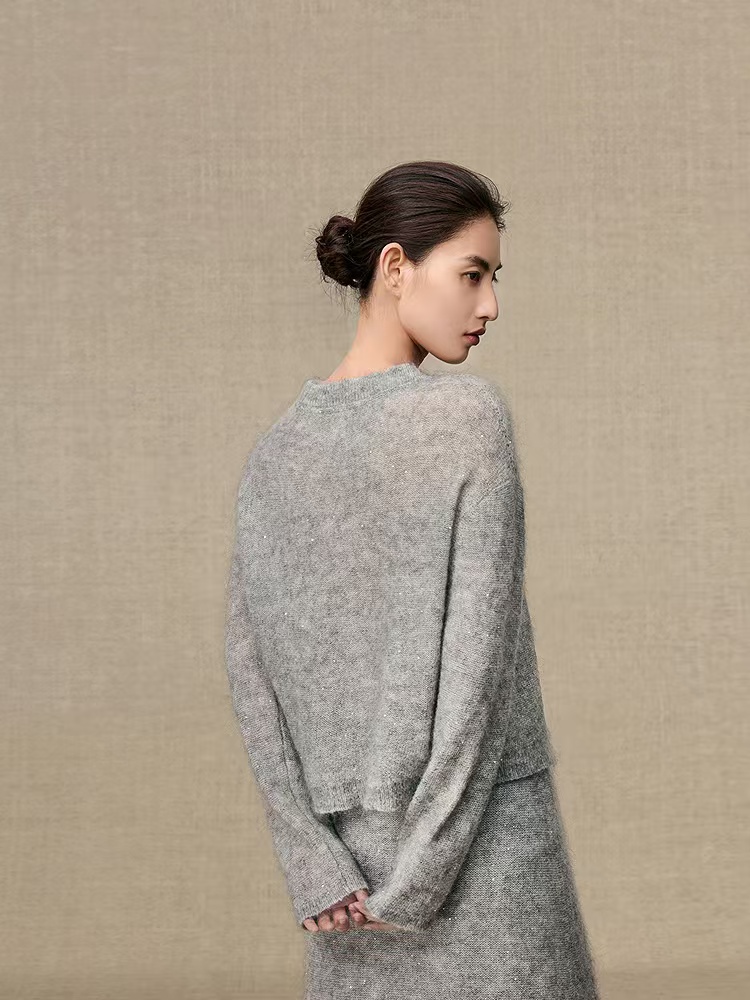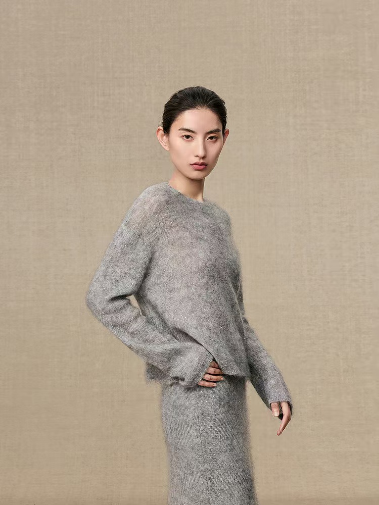 | 鄂尔多斯1980女进口马海毛亮片刺绣套衫 | |||