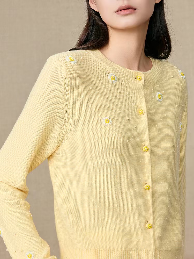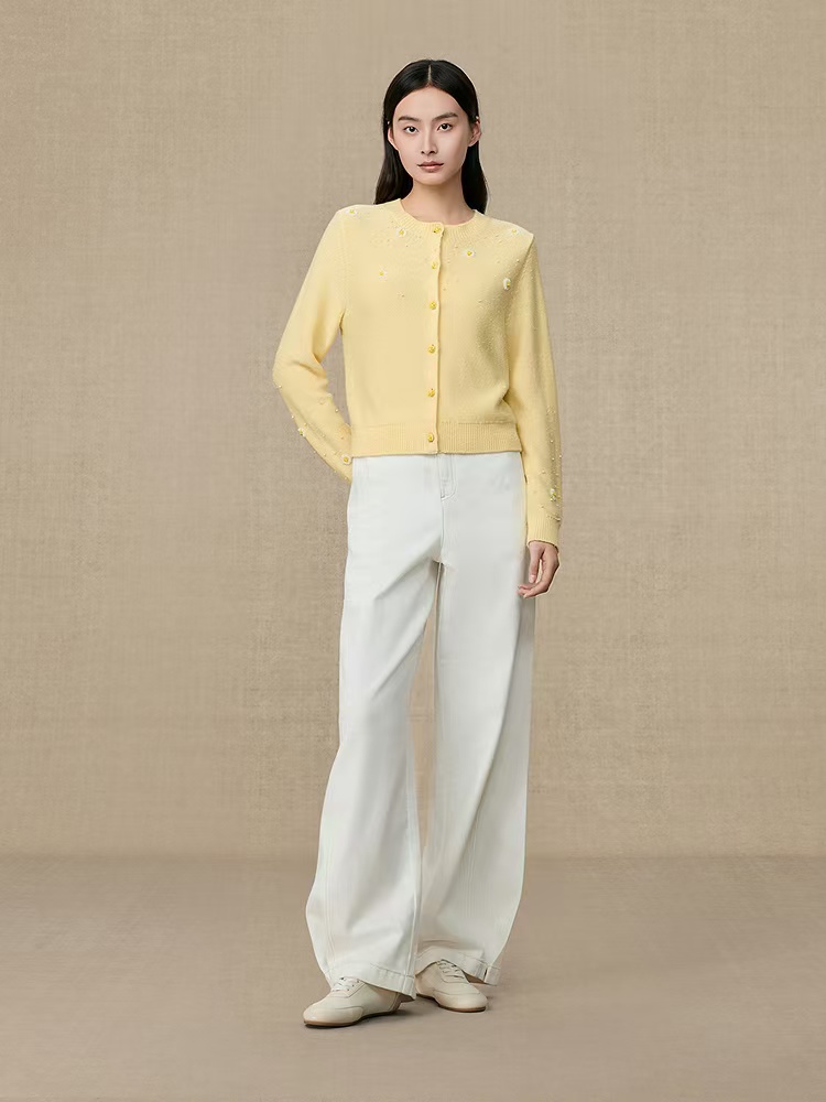 品名:鄂尔多斯1980圆领装饰女开衫 成分:100%绵羊毛(装饰物除外) |