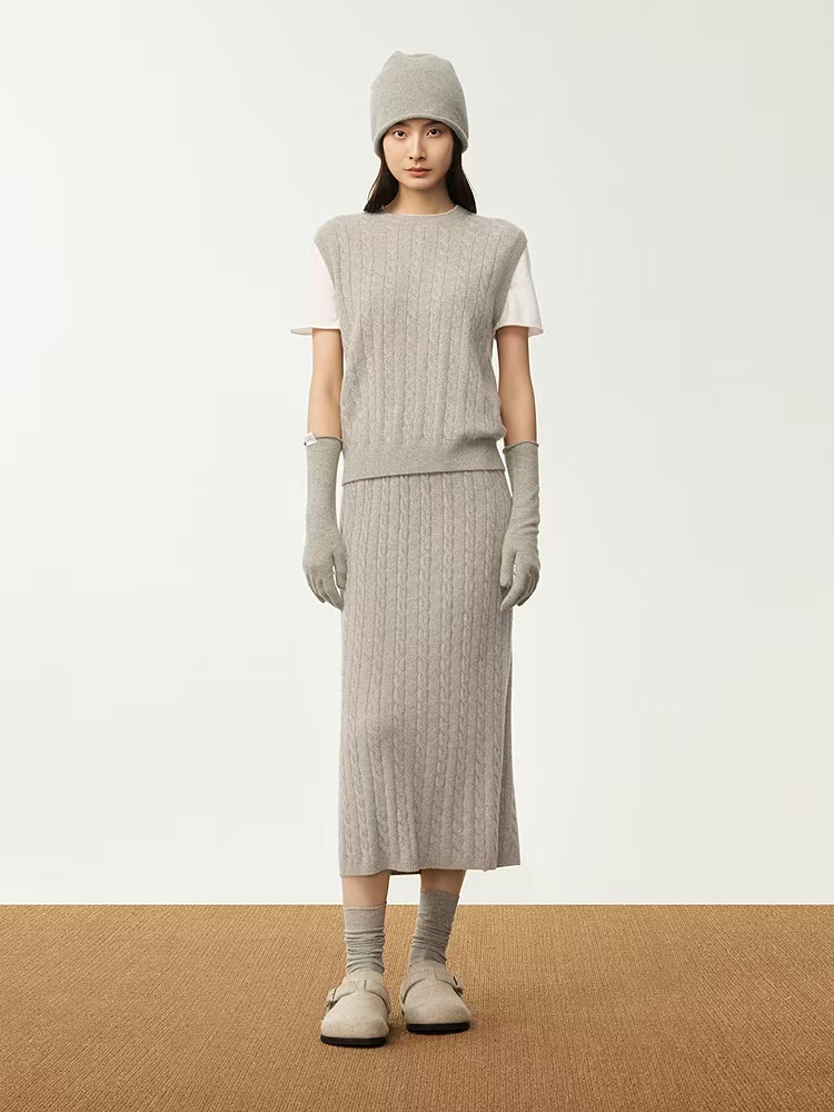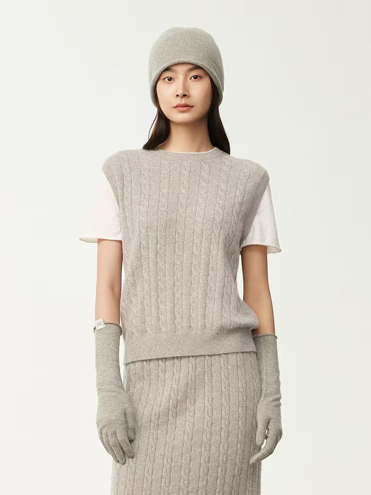 品名:鄂尔多斯1980圆领绞花半袖女套衫 成分:100%山羊绒 |