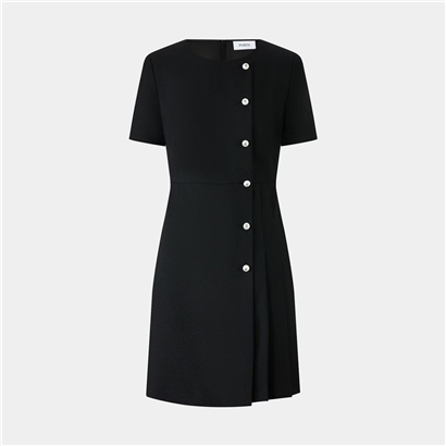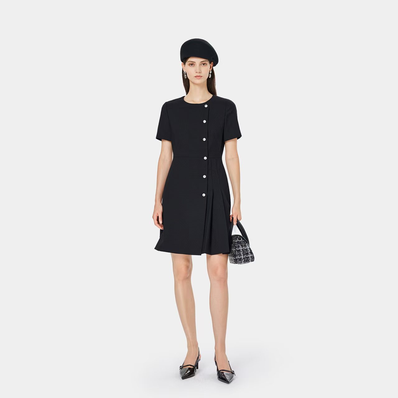 >>宝姿珍珠装饰扣羊毛花纱连衣裙