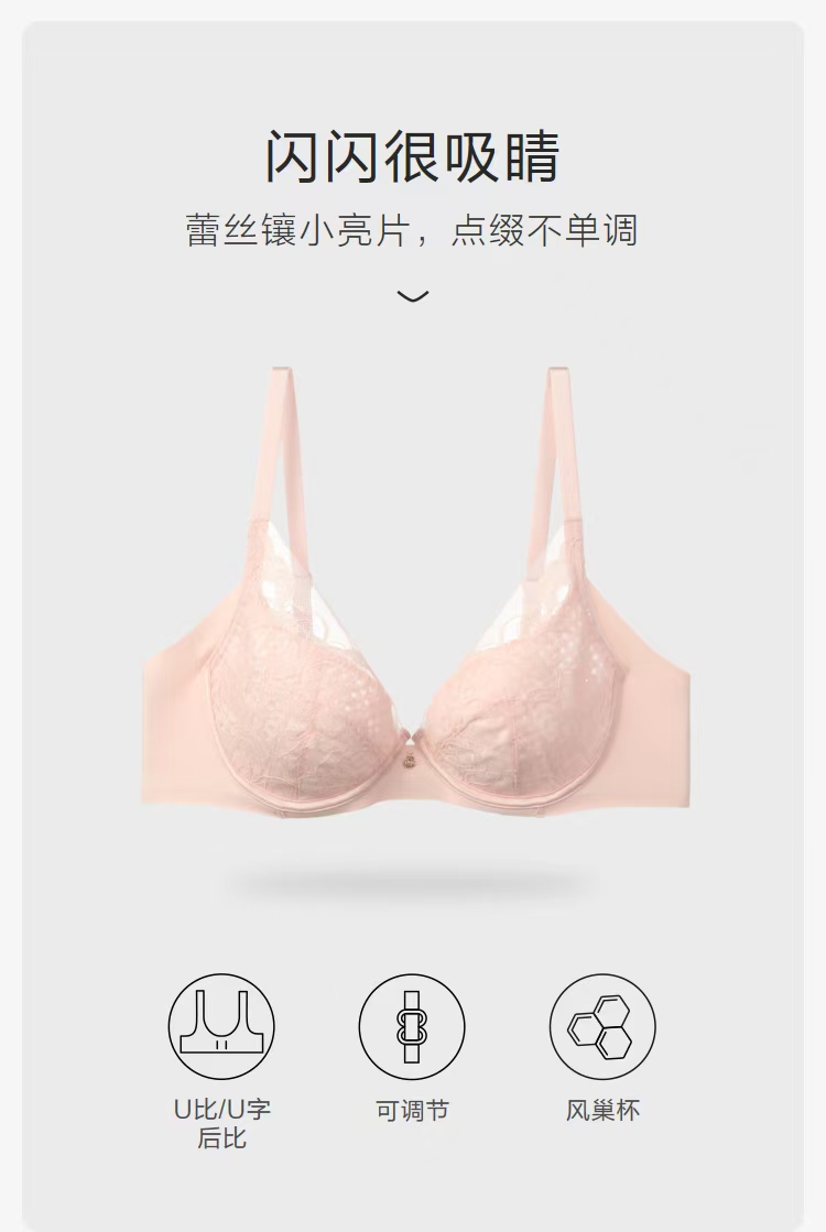 蕾丝亮片舒适透气蜂巢杯带钢圈文胸