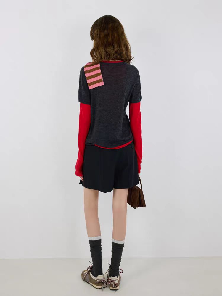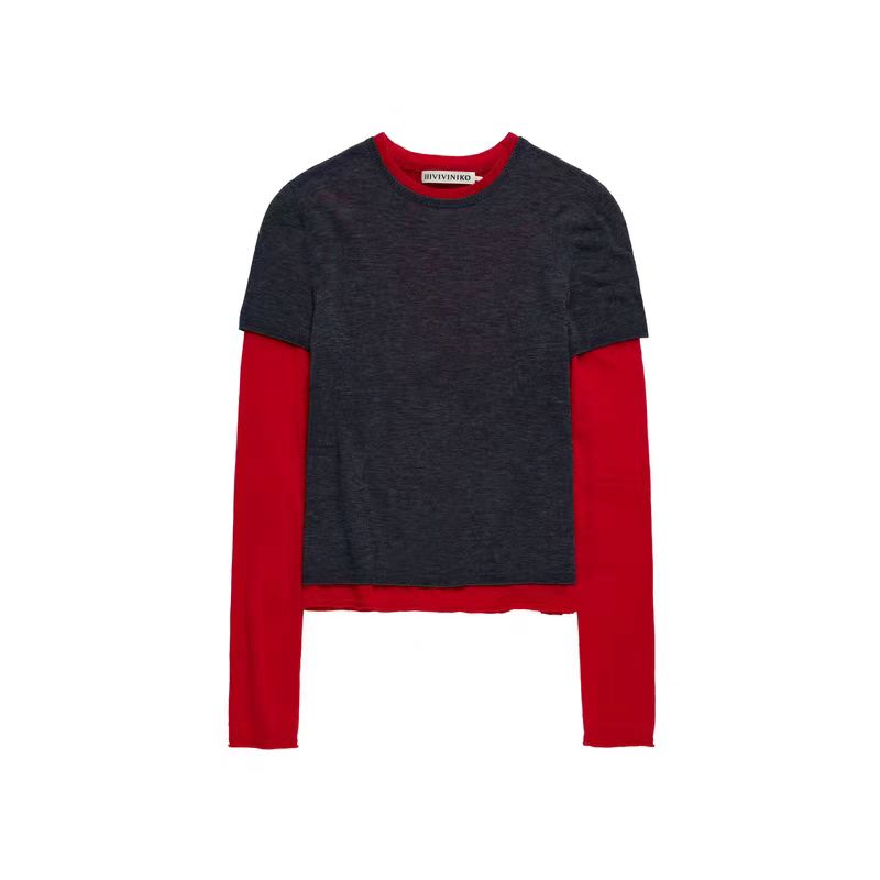 | 薇薏蔻IIIVIVINIKO2025秋新款【水溶养毛】时髦撞色假两件针织衫 | |||