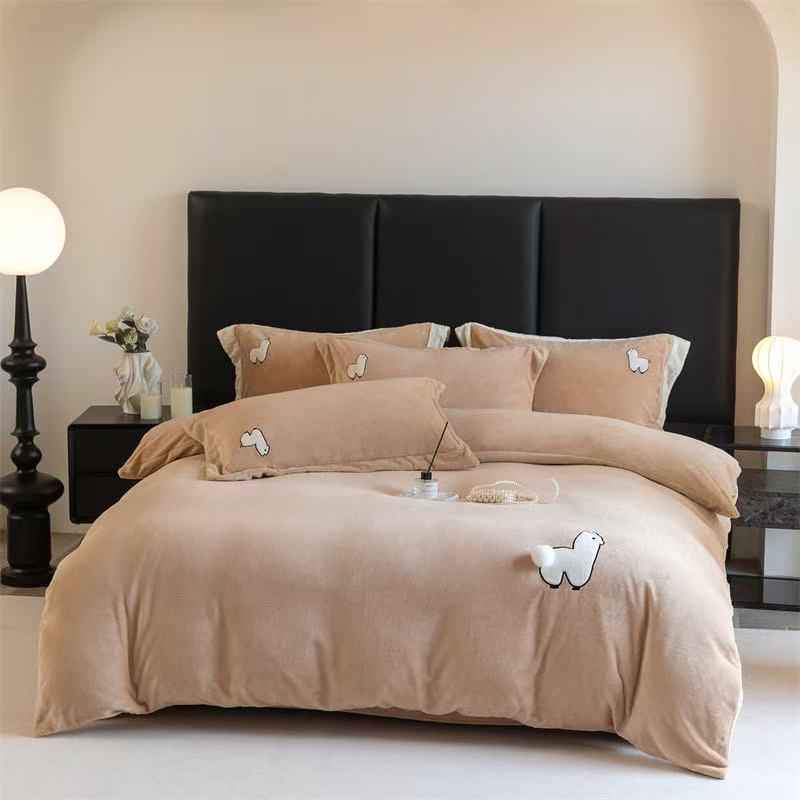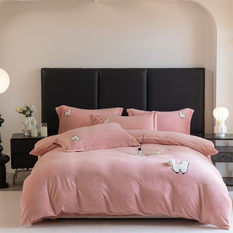 >>【双十一】无印良品特价牛奶绒绣花四件套