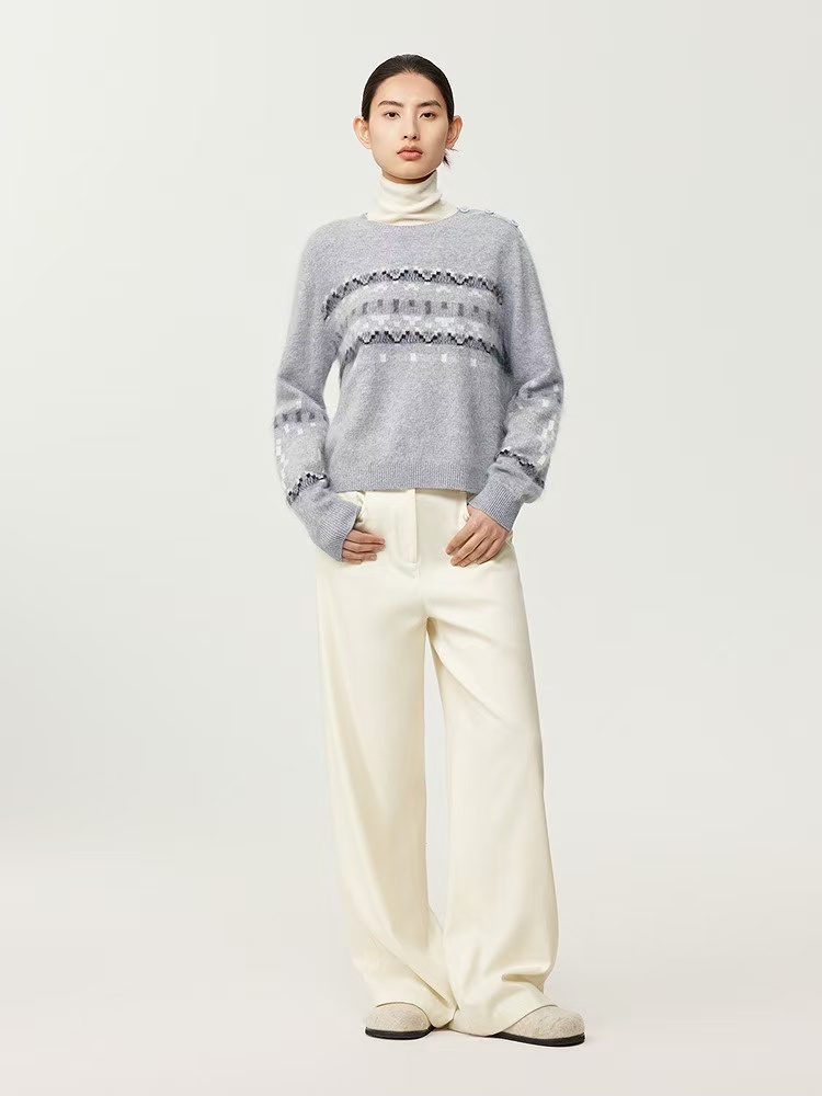 | 鄂尔多斯1980拉绒圆领虚提女套衫 | |||