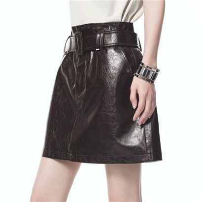 >>太平鸟摩登短宽腰带设计PU皮A字半裙