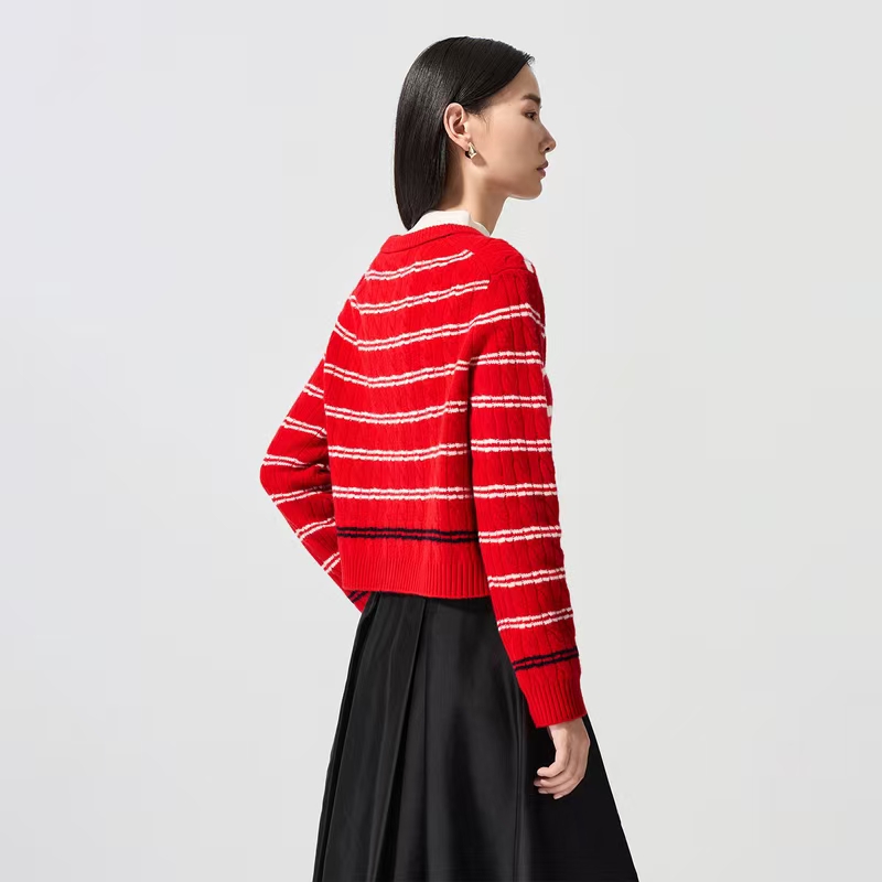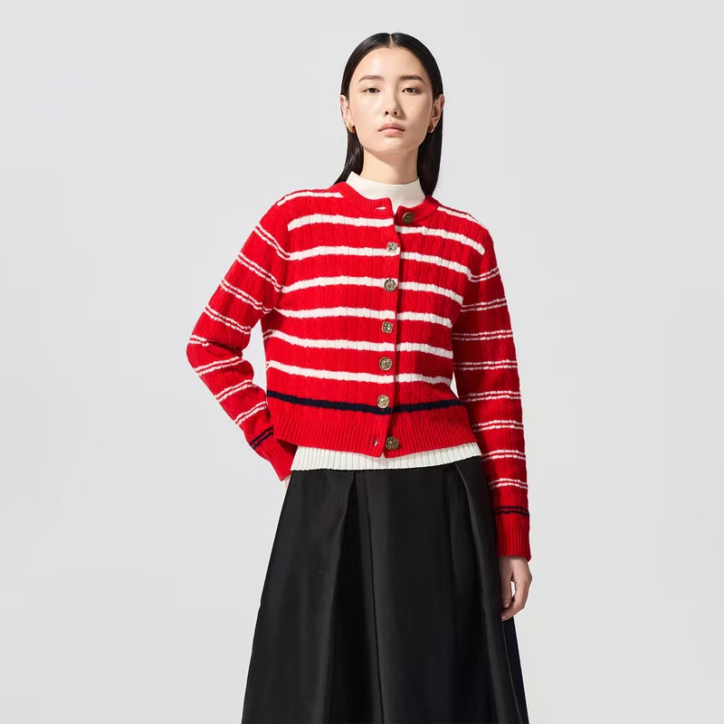 | 朗姿服饰2026春节复古羊毛条纹短针织开衫 | |||