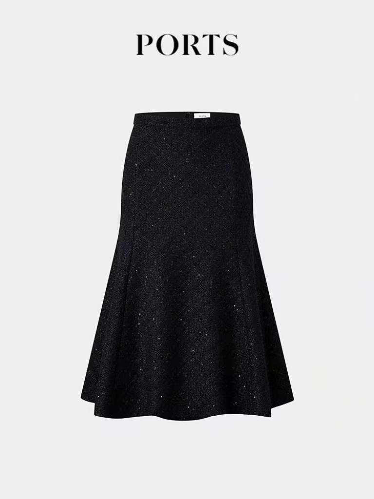 宝姿 (优雅花纱肌理闪片花呢半身裙)