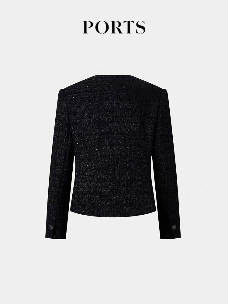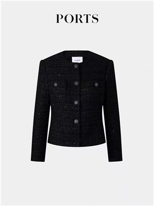 >>宝姿 (优雅花纱肌理闪片花呢外套)