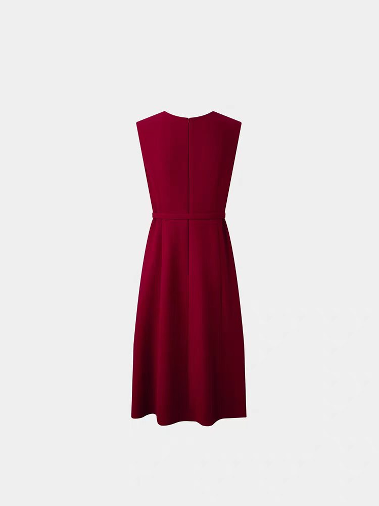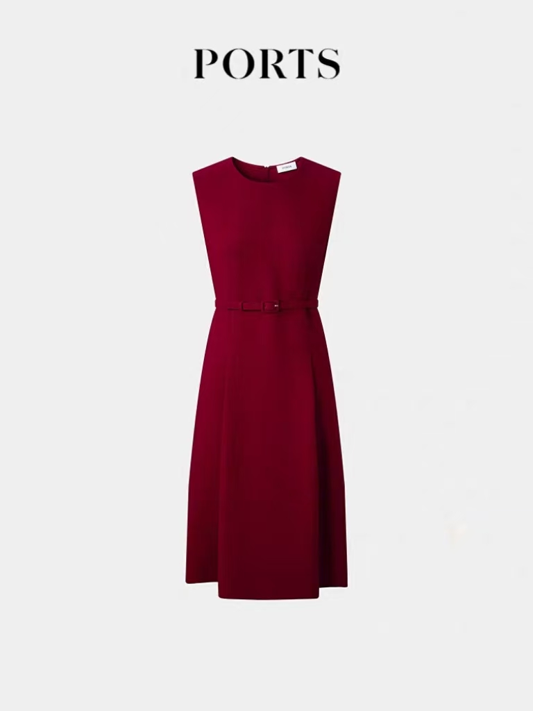 >>宝姿 (纵情红肌理感无袖羊毛连衣裙)