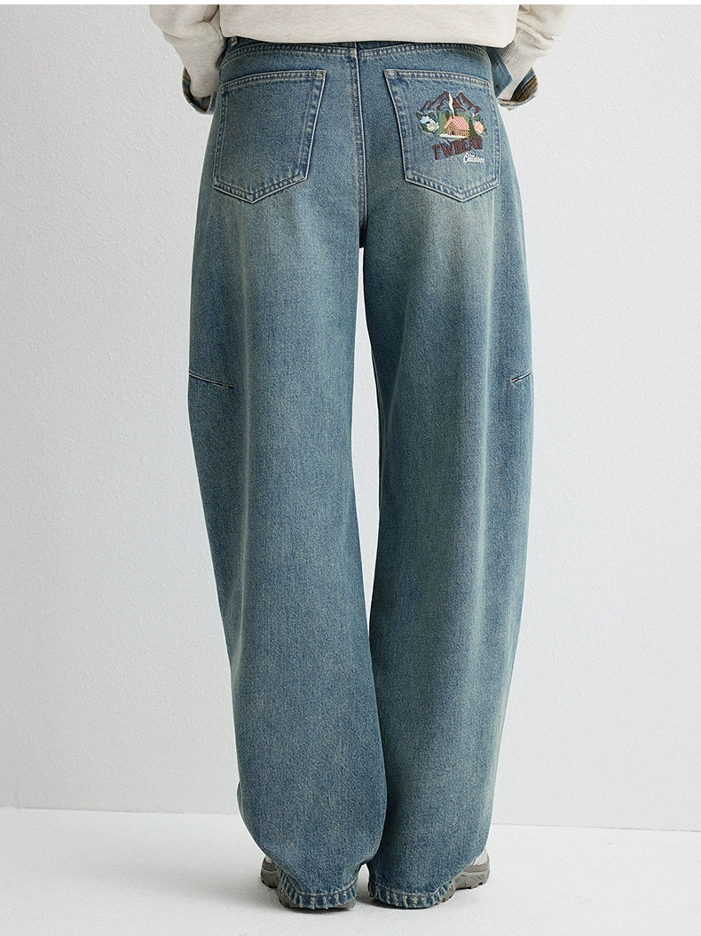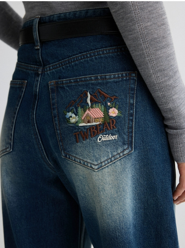TeenieWeenie小熊女装牛仔裤2025年冬季新款潮流时髦舒适刺绣长裤