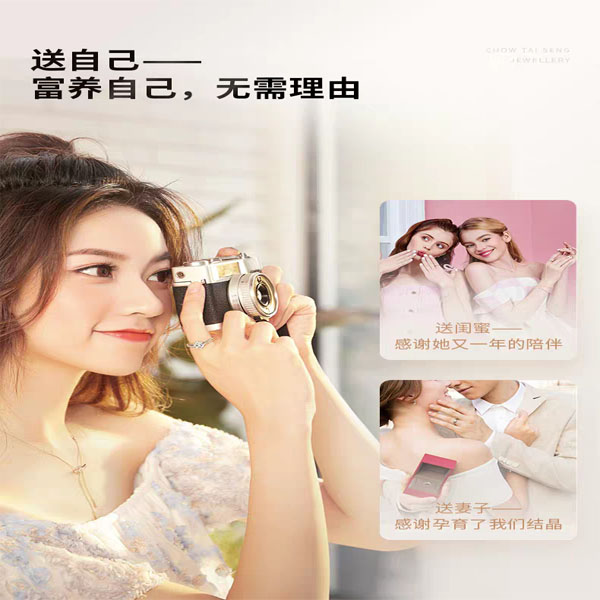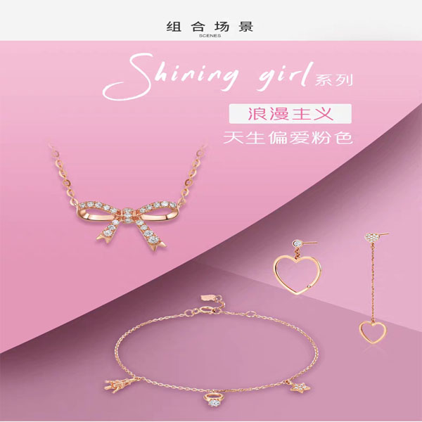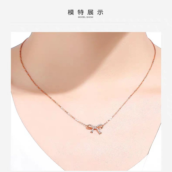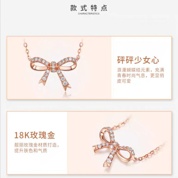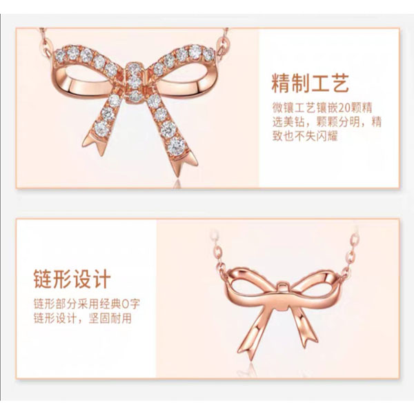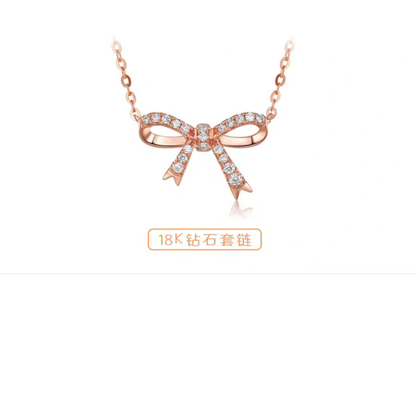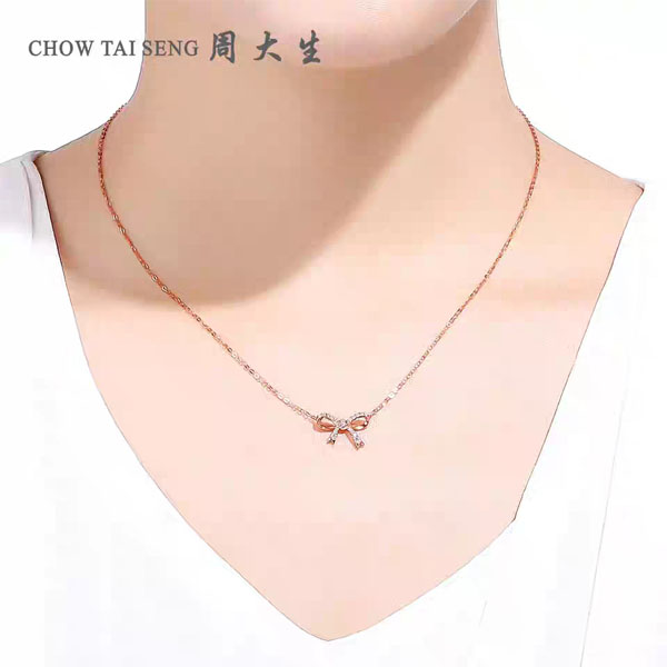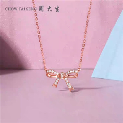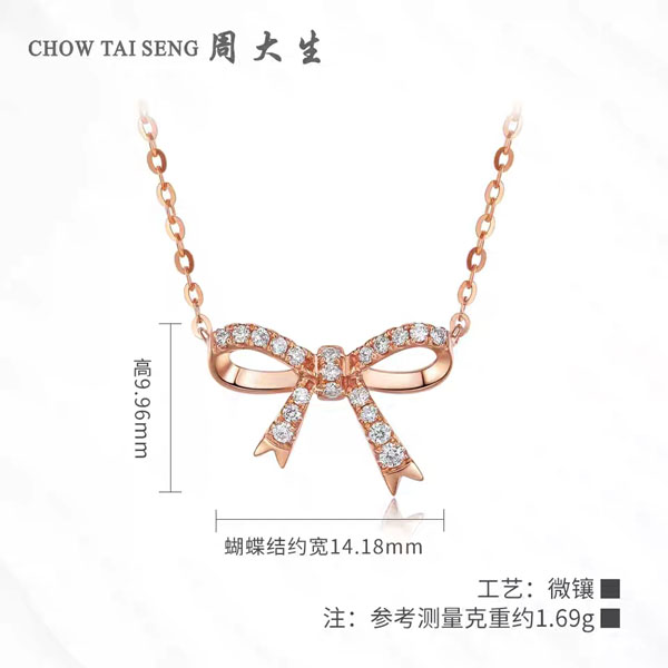 >>周大生钻石项链18K金玫瑰金蝴蝶结套链