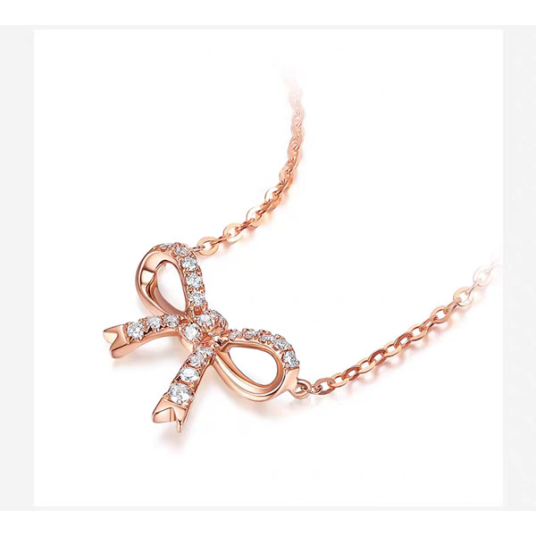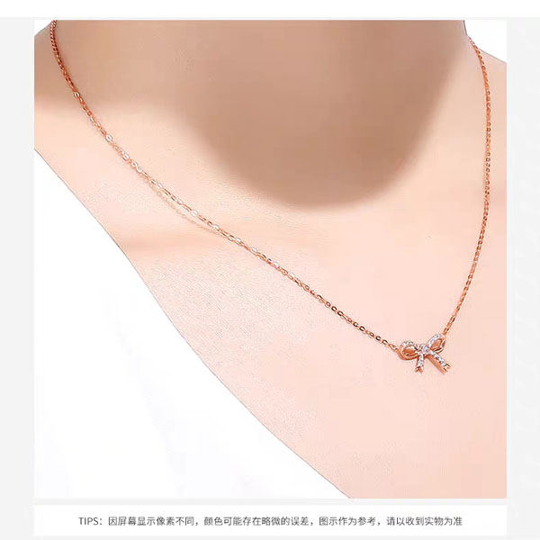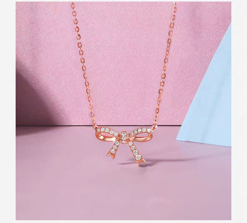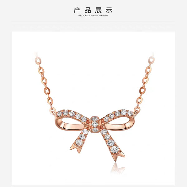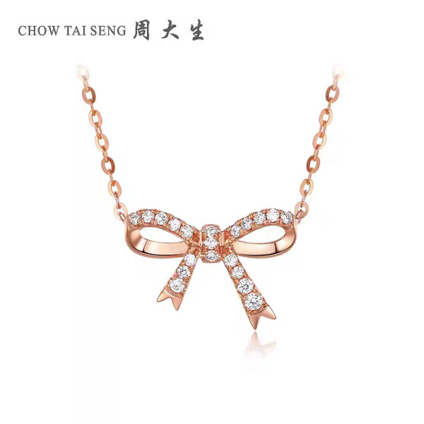 周大生钻石项链18K金玫瑰金蝴蝶结套链
