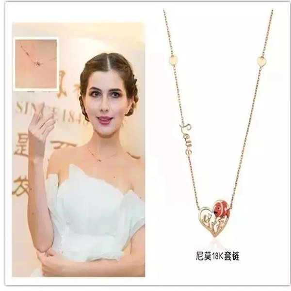 >>(专柜自提)老凤祥迪士尼金18K钻石项链表面珐琅