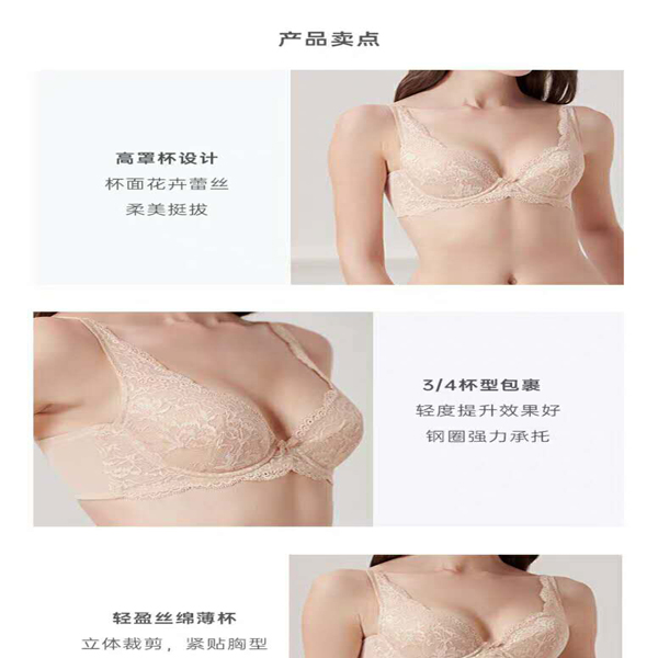 黛安芬悠然无钢圈聚拢薄杯蕾丝全杯文胸