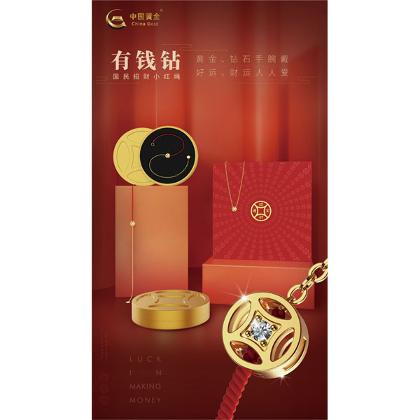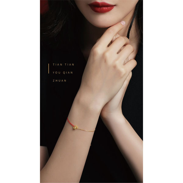 (专柜自提)越王珠宝18K金钻石爱心红绳手串