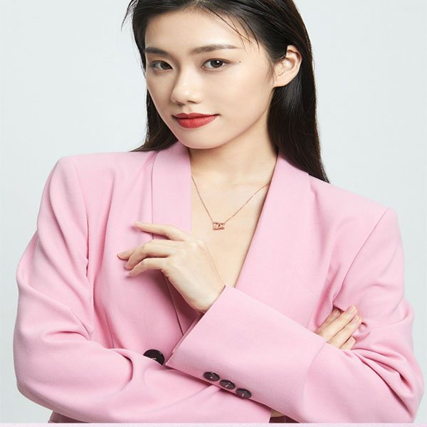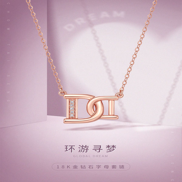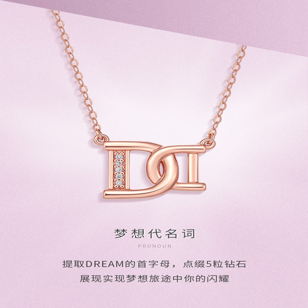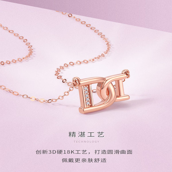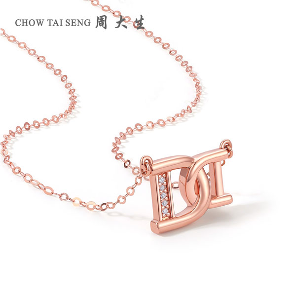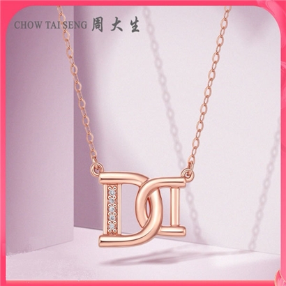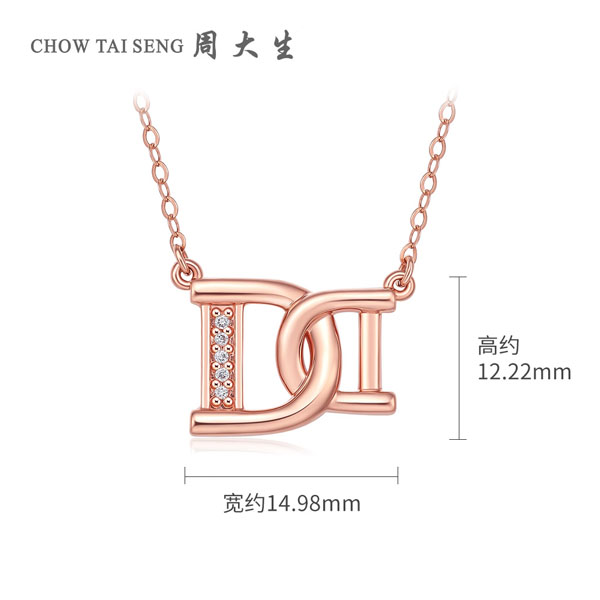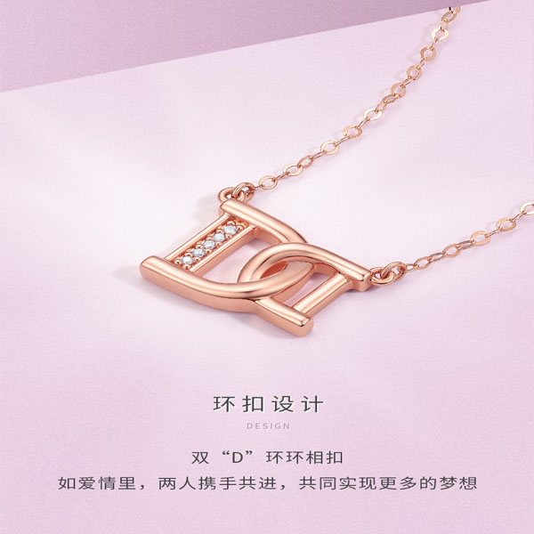 周大生钻石项链18K金玫瑰金蝴蝶结套链