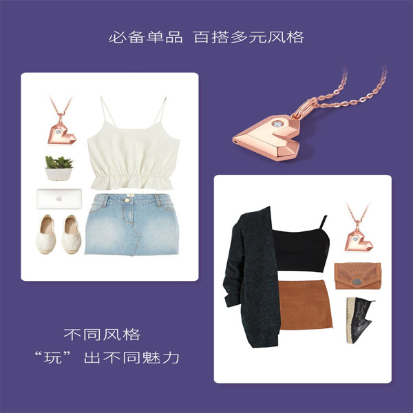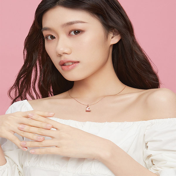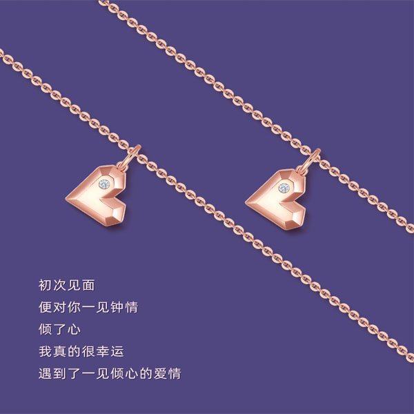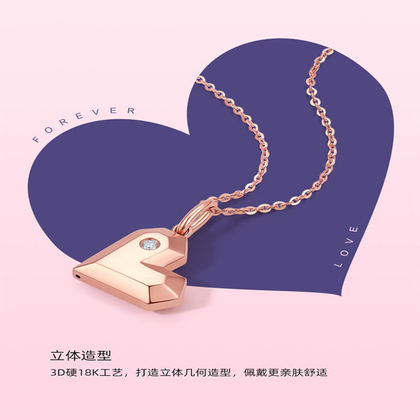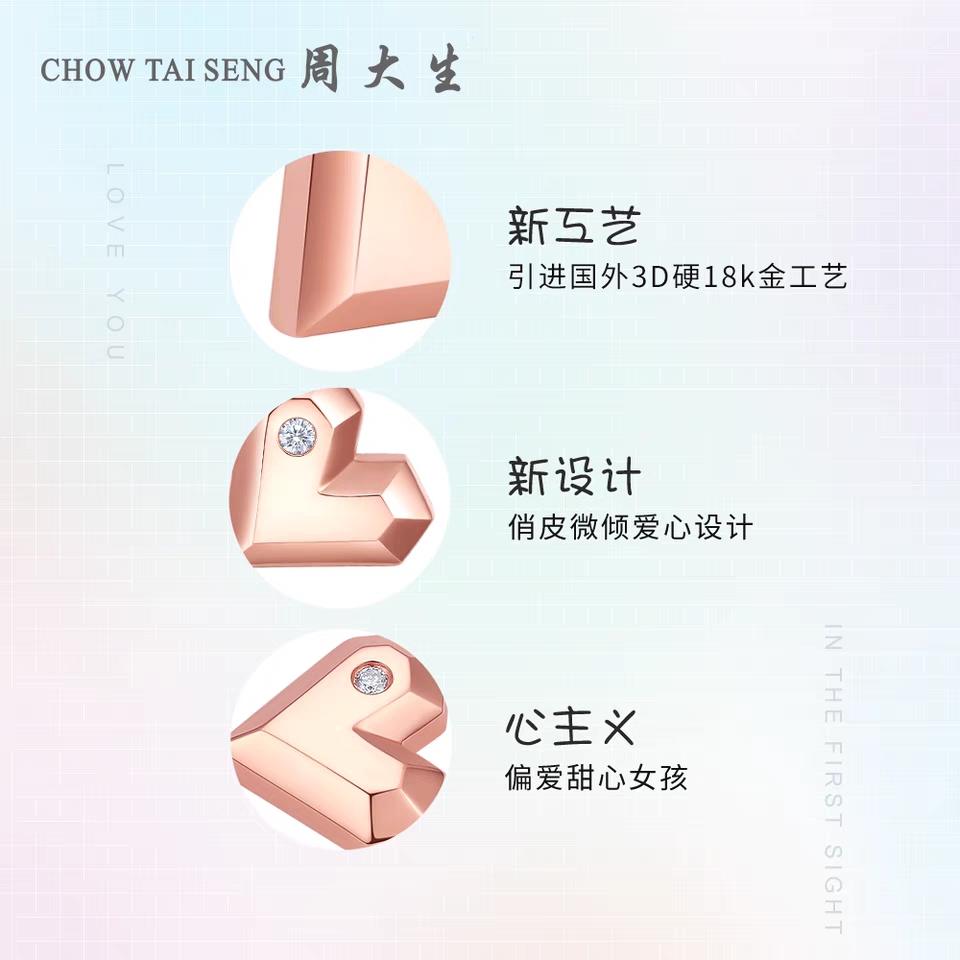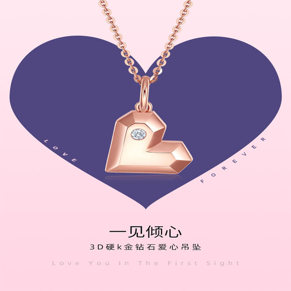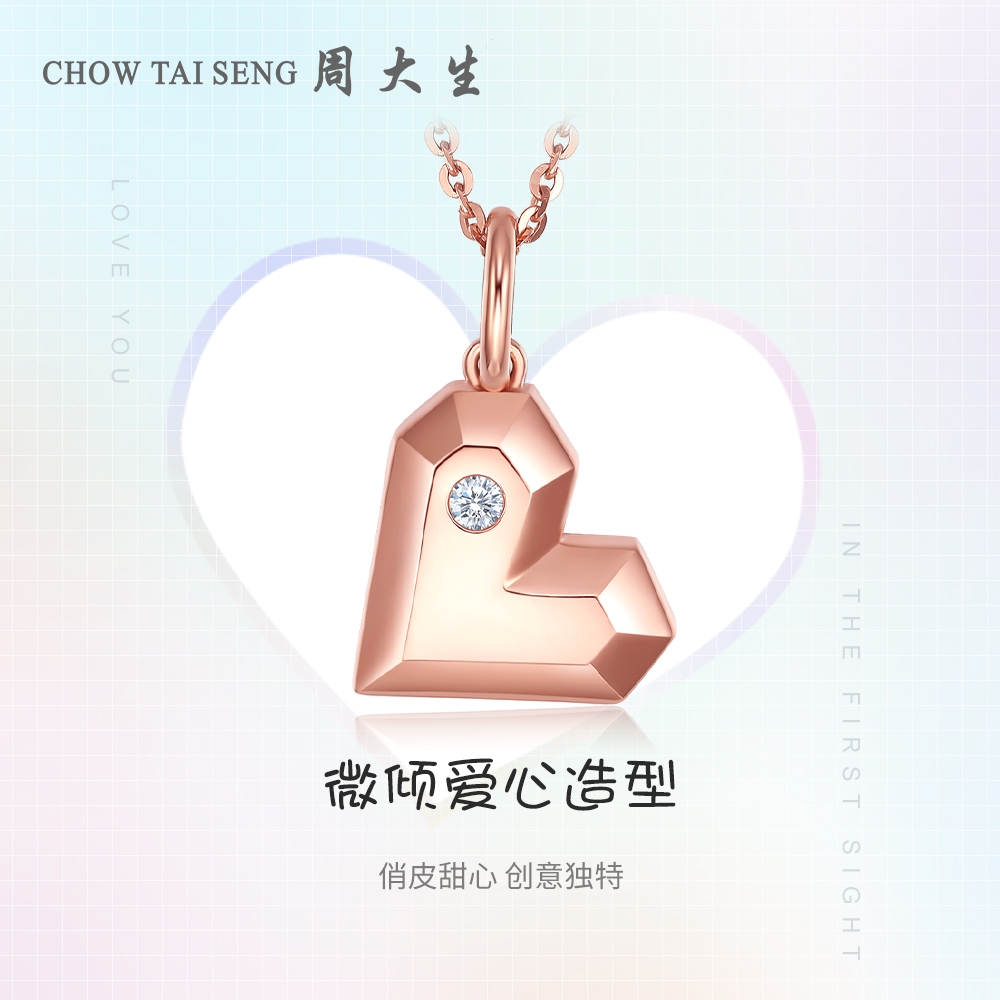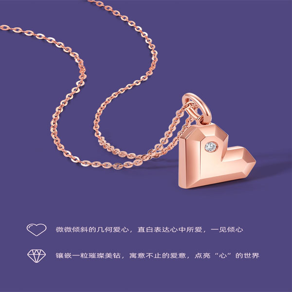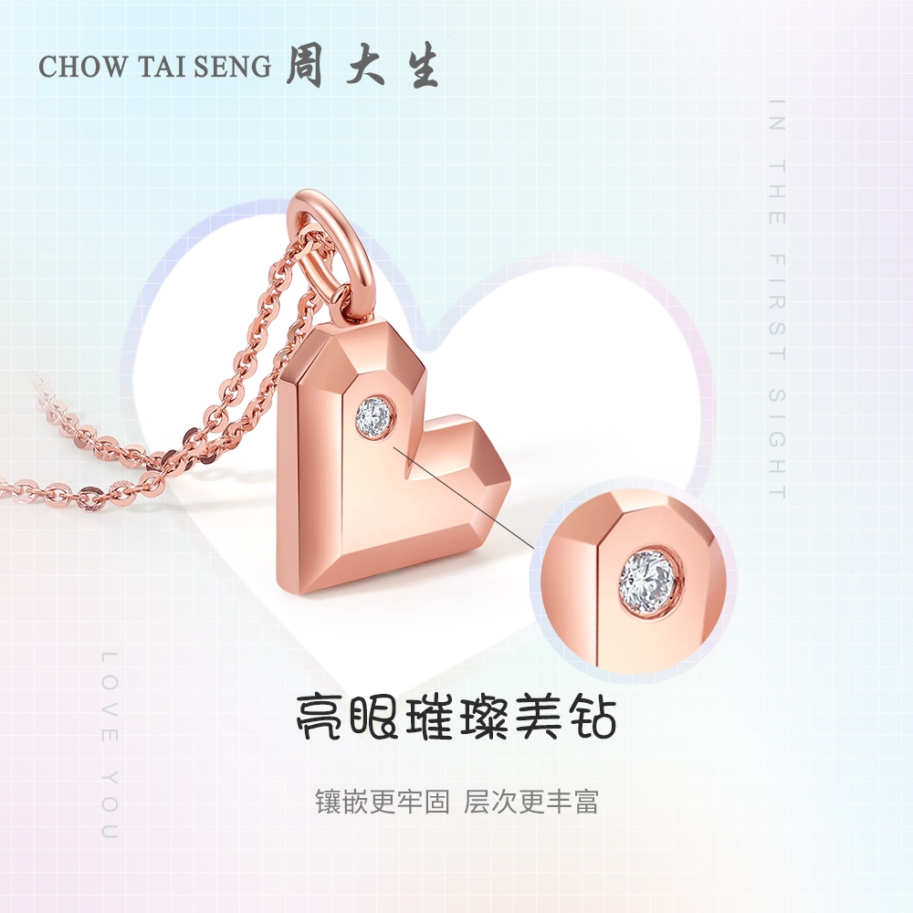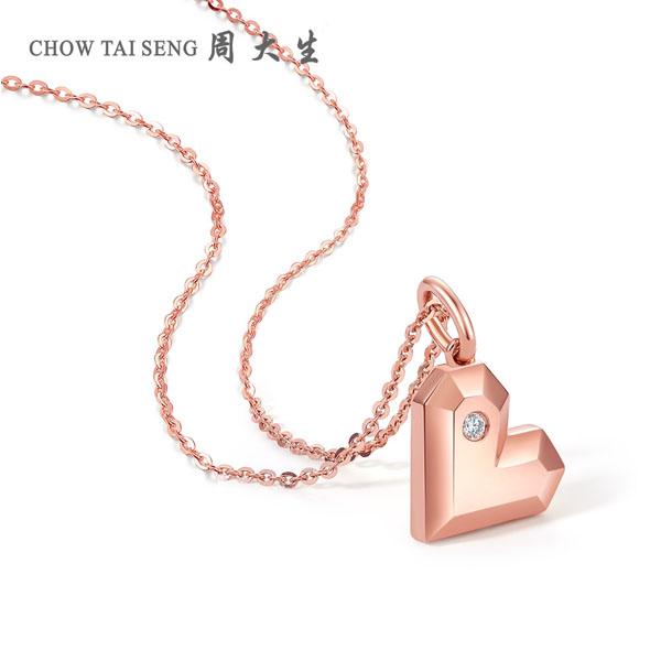 >>周大生18K金心形玫瑰金钻石吊坠一见倾心