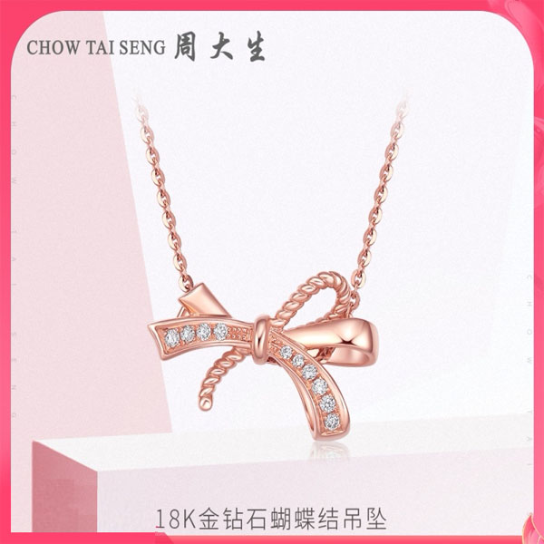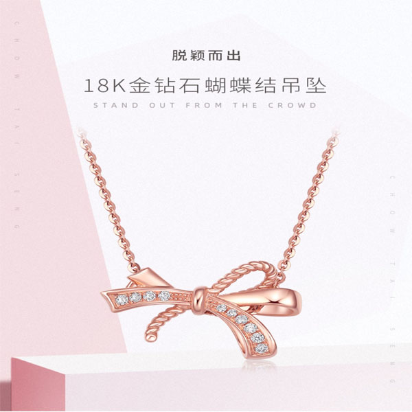 >>周大生18K金钻石蝴蝶结吊坠脱颖而出