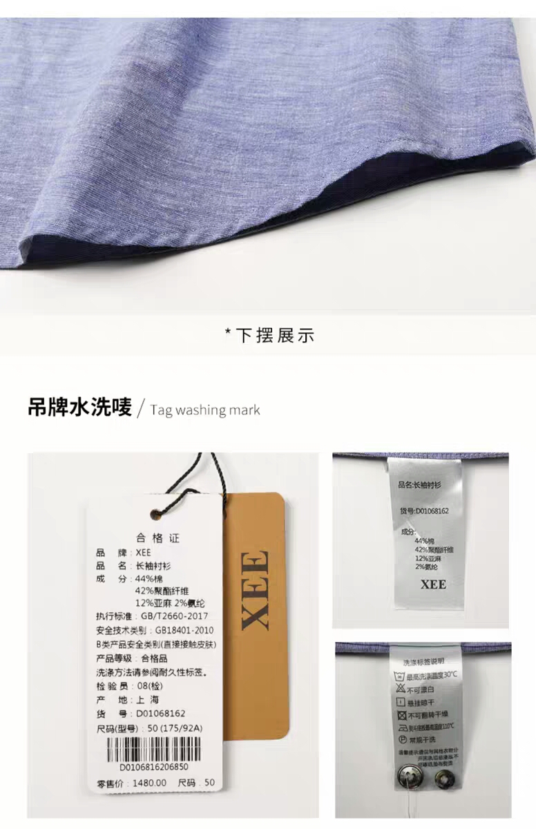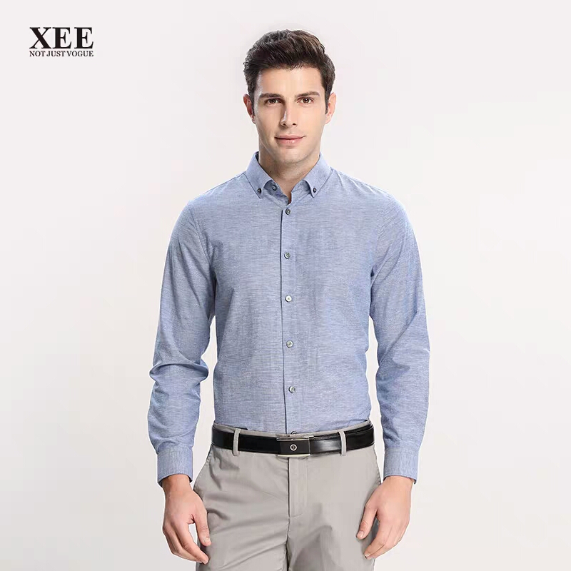 | XEE商场同款男士蓝色微弹舒适商务休闲长袖衬衫 | |||