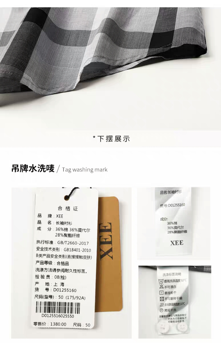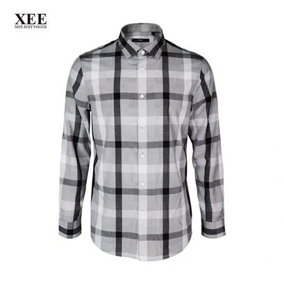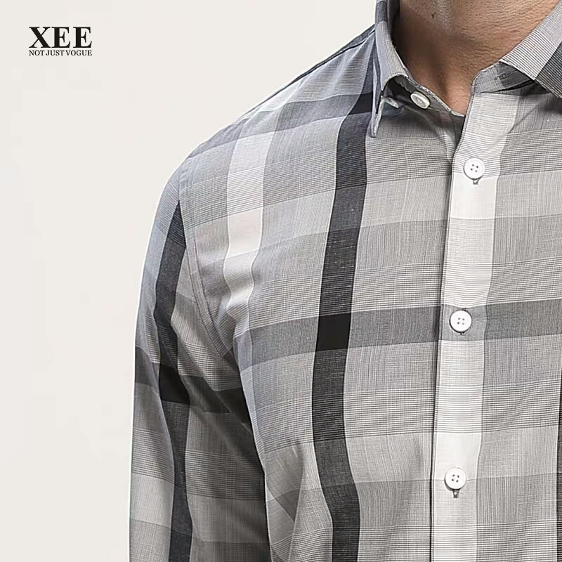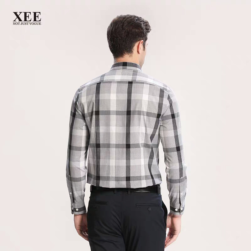 | XEE商场同款灰色格纹微弹舒适休闲长袖衬衫 | |||