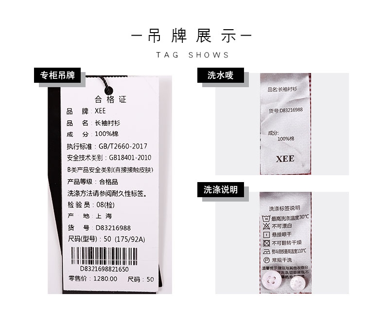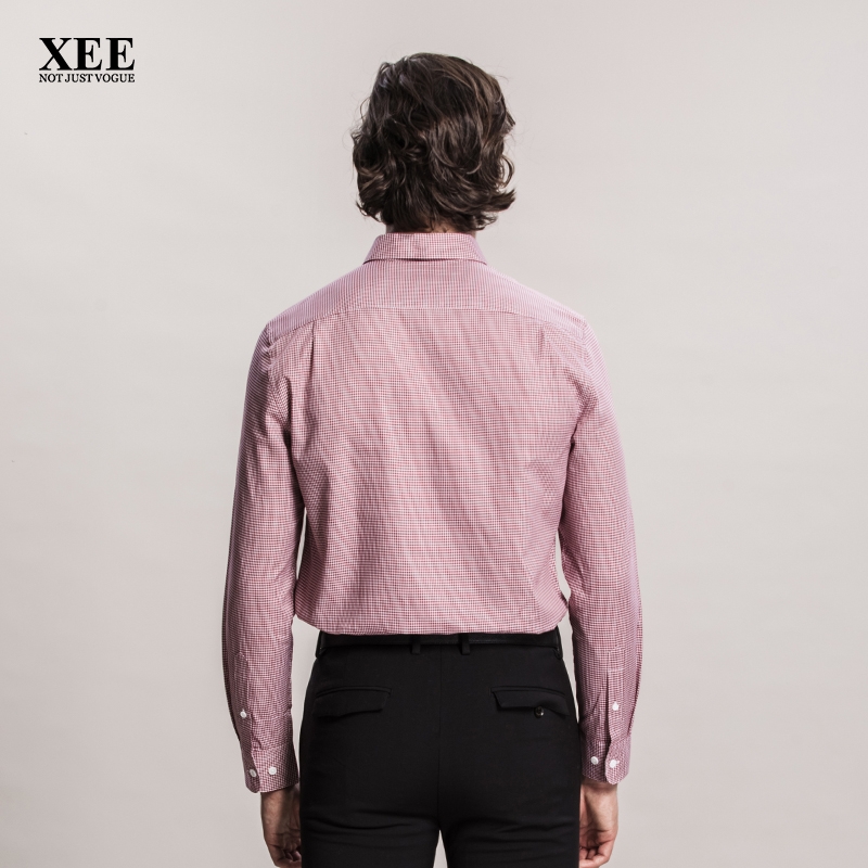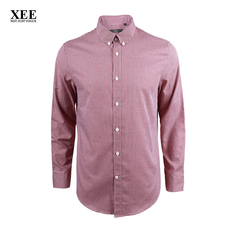 | XEE商场同款秋季新款男士红白格纹暗扣领商务长袖衬衫 | |||
