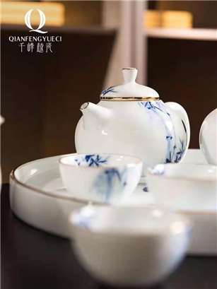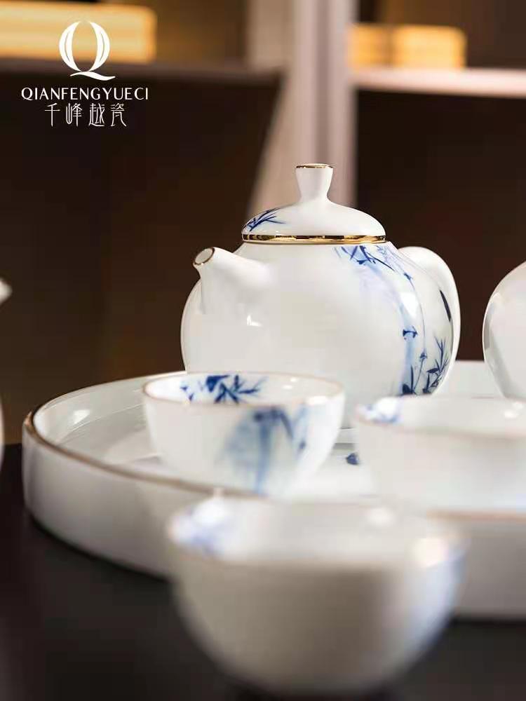 千峰翠国瓷10头若谷茶具竹+金