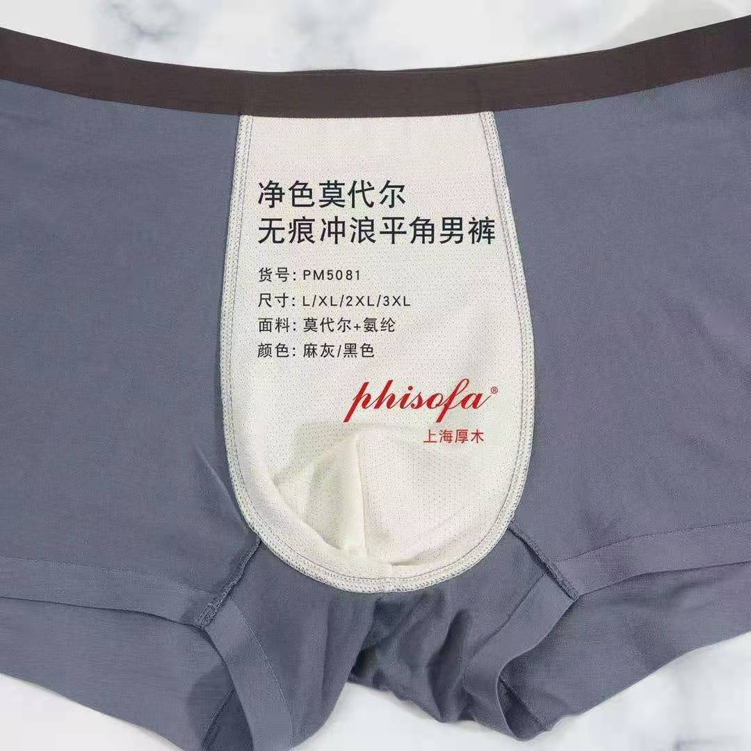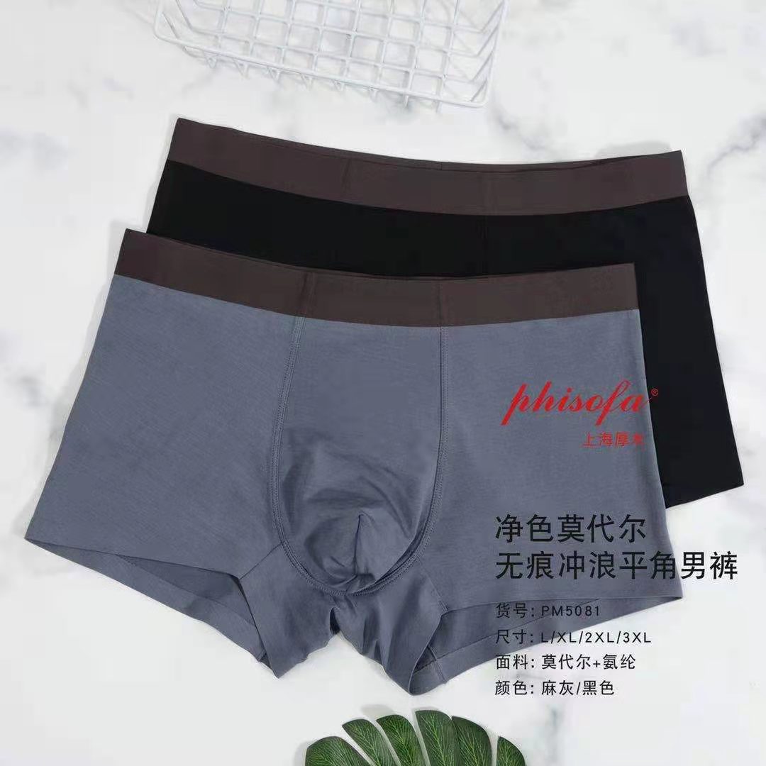 >>菲索法净色莫代尔无痕冲浪平角男裤