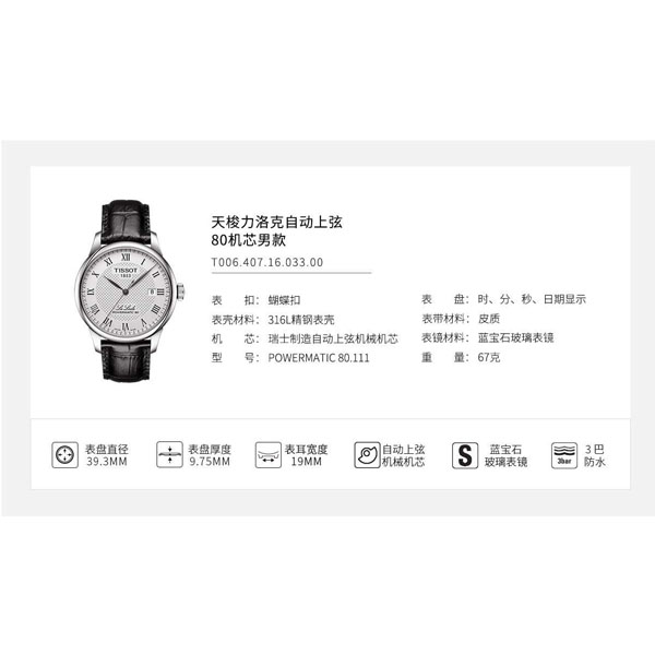 >>TISSOT天梭力洛克系列皮带80机芯男士自动机械腕表