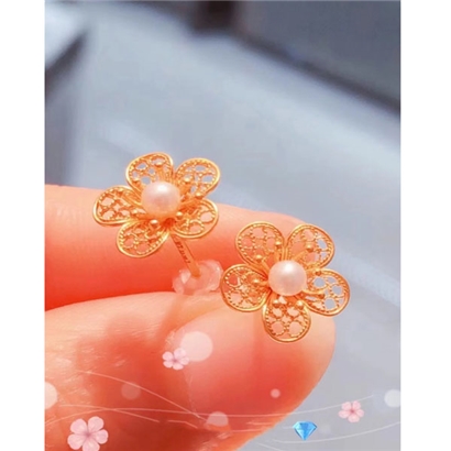 >>越王珠宝新款悦芳华系列黄金珍珠镶嵌耳钉